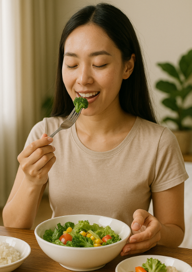 식이섬유는 장운동을 촉진하고 포만감을 줍니다. 생야채나 나물류를 식사의 첫 번째로 드셔보세요.