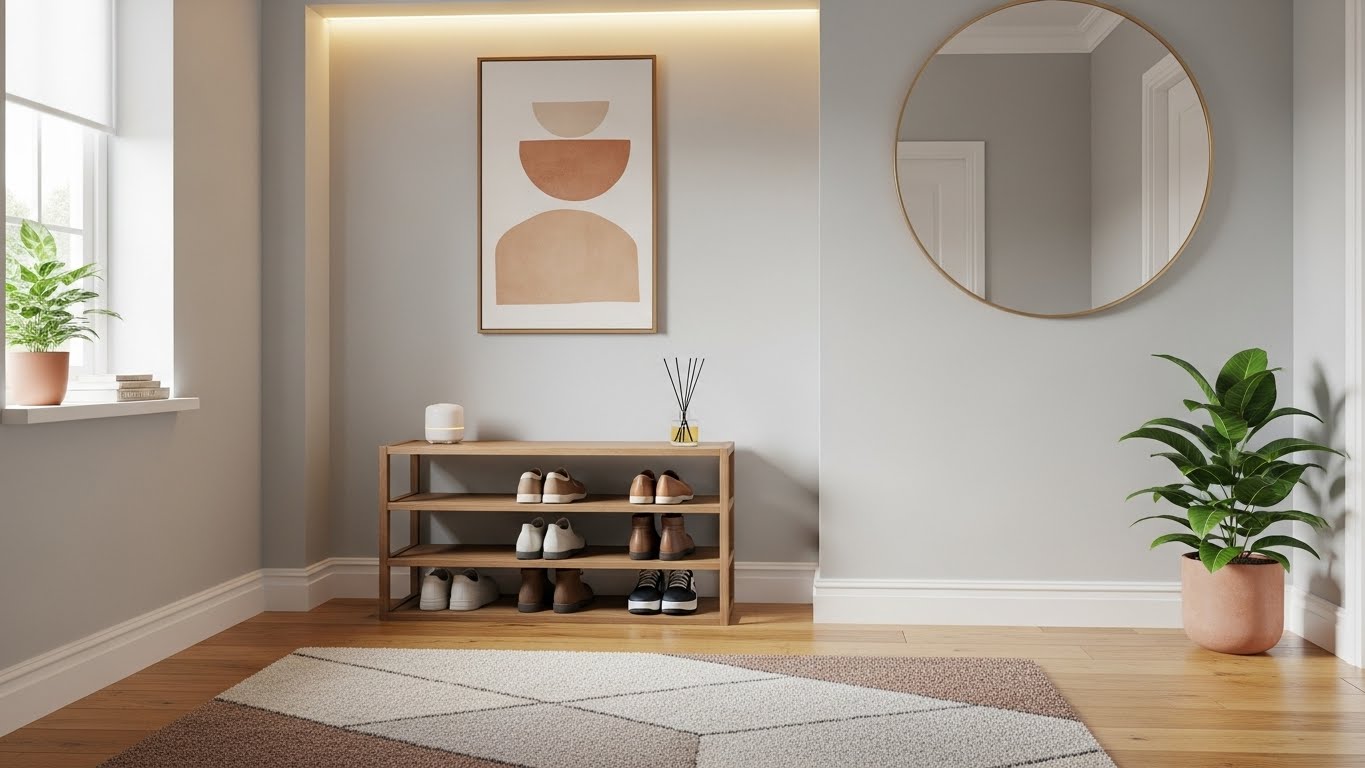 현관은 외부에서 내부로 전환되는 완충 공간이자, 하루의 시작과 끝을 마주하는 장소입니다. 그래서 현관 인테리어는 단순한 수납을 넘어 심리적인 안정감과 환영의 메시지를 전달해야 합니다. 특히 신발장, 조명, 향 이 세 가지 요소만 바꿔도 현관의 분위기는 놀라울 정도로 달라집니다.
